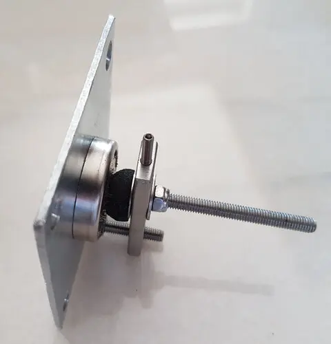 Der Kopf der Senkkopfschraube zum befestigen des Ringmagneten sitzt vertieft und beweglich im Ringmagneten. Mit der Verschraubung lässt sich die Härte der Pufferung und die Beweglichkeit des Ringmagneten einstellen. Durch die Beweglichkeit des Ringmagneten kann dieser sich bis zu einem gewissen Grad auf der Grundplatte ausrichten um bestmöglich zu haften.